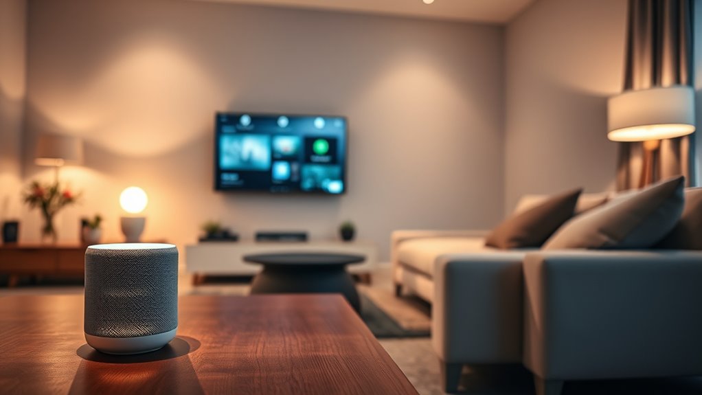 When setting up your smart home, focus on choosing devices that support accessible features and are compatible with your preferred voice assistant platform. Many devices now come with built-in accessibility options, like voice feedback, adjustable volume, and customizable alerts. By combining these features with personalized voice command customization, you can craft an environment that responds precisely to your needs. For example, you might program a command like “Good morning” to turn on lights, start your coffee maker, and play your favorite news station—all with a single phrase. This level of control not only saves time but also fosters a sense of autonomy and security.