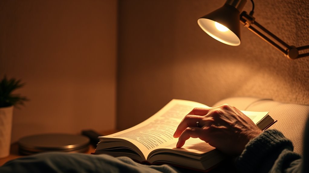 Color contrast becomes increasingly important as your ability to distinguish subtle differences in shades diminishes with age. To make objects and text stand out more clearly, choose lighting that enhances color contrast. Warm light bulbs, with a color temperature around 2700K to 3000K, tend to improve visibility by creating a cozy ambiance and making colors appear more vibrant. Conversely, cooler lights can sometimes wash out details, so selecting warm or neutral tones is generally more effective. When reading or working on detailed tasks, consider using dedicated task lighting with adjustable brightness and focused beams. This ensures you’re providing ample illumination exactly where you need it, making it easier to see fine details and reducing eye fatigue.