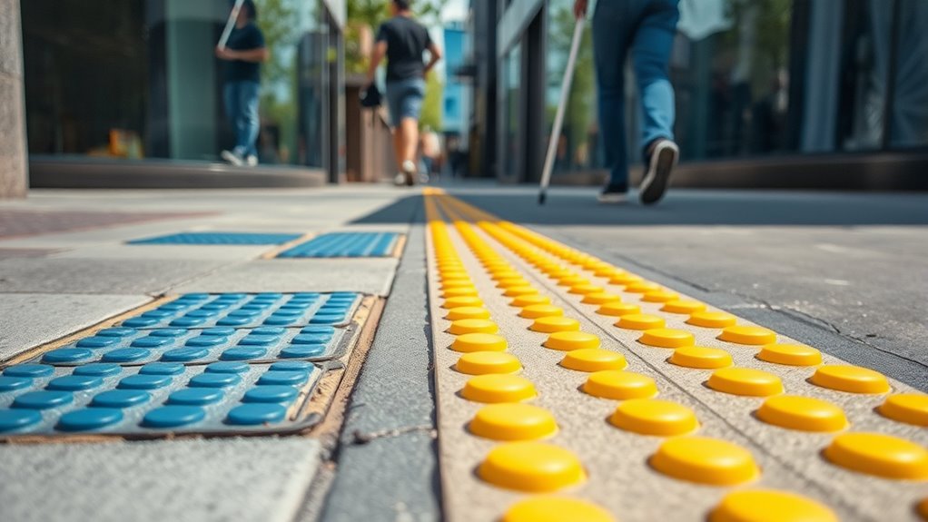 Did you know that over 70% of urban pedestrians struggle with wayfinding? To improve accessibility, you should advocate for sensor integration in city infrastructure, which offers real-time guidance and obstacle alerts. Encouraging community involvement guarantees diverse needs are considered, creating more inclusive environments. These steps help everyone navigate confidently, making cities safer and more welcoming for people with visual or tactile navigation needs.