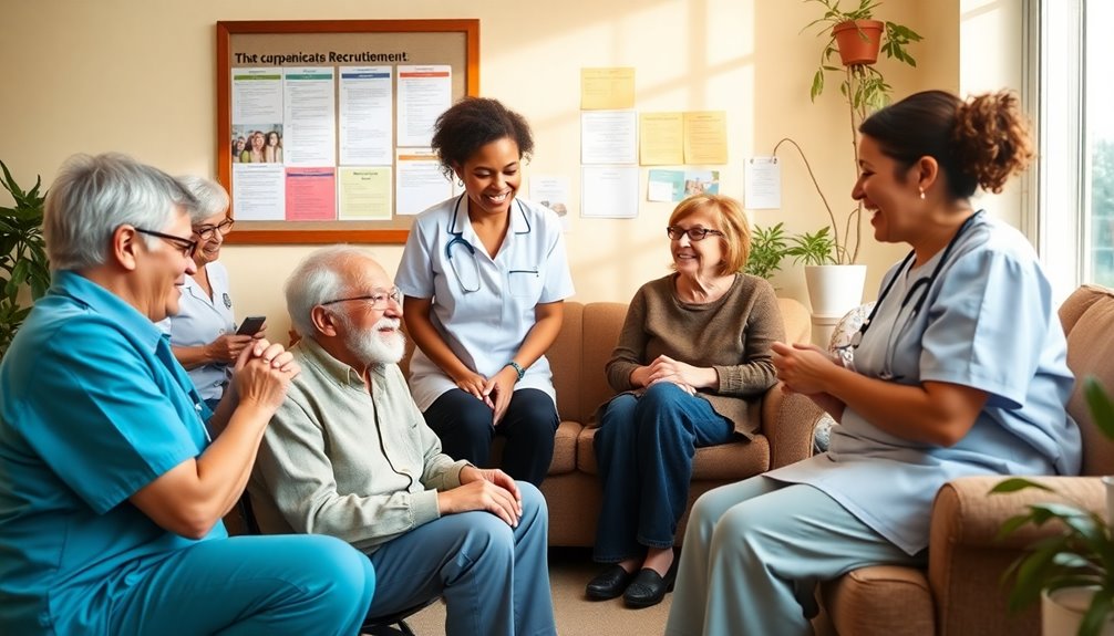 Regular check-ins and team-building activities improve communication channels, allowing caregivers to feel more engaged and valued. Providing ongoing training resources guarantees they're equipped with the skills needed for success, which directly impacts caregiver retention.