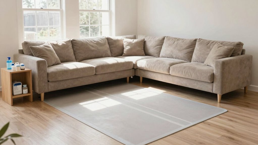Another key aspect is guaranteeing your furniture arrangement promotes independence. Keep frequently used items within easy reach, avoiding the need for stretching or bending. For instance, placing a bedside table within arm’s reach of the bed allows for quick access to essentials without unnecessary movement. To further enhance safety, use furniture with rounded edges and non-slip pads, especially in areas prone to moisture or spills. These small modifications can make a big difference in preventing accidents and creating a more secure environment for caregiving. Additionally, understanding the importance of home safety can help you identify potential hazards and address them proactively. Incorporating home safety principles can also guide you in choosing the right furniture and layout to prevent common dangers.