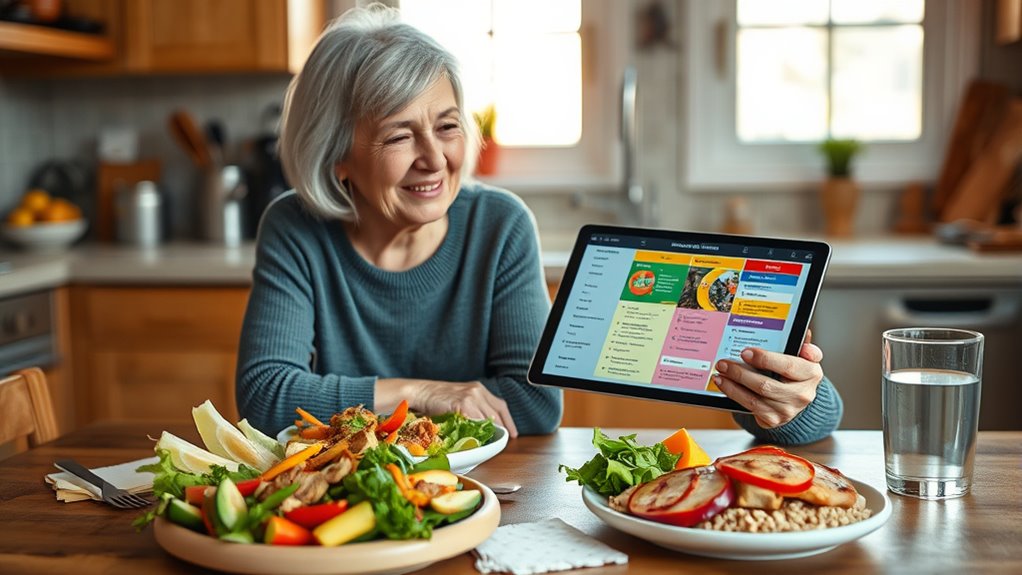 Hydration strategies are equally critical as you plan your diet. As you age, your sense of thirst may diminish, increasing the risk of dehydration. To combat this, set specific hydration goals—such as drinking a glass of water with each meal and snack—and keep a water bottle nearby throughout the day. Incorporate a variety of fluids like herbal teas, infused waters, or broths to keep hydration interesting. Proper hydration not only supports digestion and nutrient absorption but also aids in maintaining skin health, joint lubrication, and overall energy levels. Remember, dehydration can sometimes mimic hunger, leading you to eat more than necessary, so staying well-hydrated helps regulate your appetite.