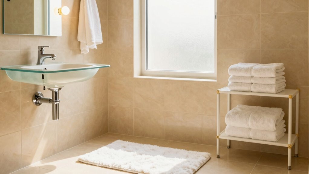You can make your bathroom more accessible for seniors by installing grab bars near the toilet and shower for added support. Consider replacing the standard toilet with a raised one to reduce strain on joints. Make certain walkways are clear, and use non-slip mats for safety. These modifications help seniors feel more confident and secure, making their bathroom experience safer and more comfortable.