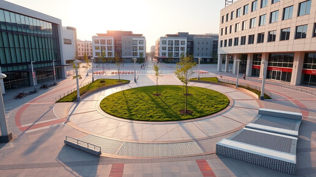 Effective spatial planning is key to creating spaces that are both accessible and easy to navigate. When designing environments, you need to prioritize how people move through the area, guaranteeing that pedestrian pathways are clear, direct, and safe. Well-planned pedestrian pathways help reduce congestion, prevent accidents, and make sure everyone can reach their destinations comfortably. Think about how people will walk from one point to another and design pathways that are wide enough to accommodate foot traffic without feeling crowded. Incorporate curb cuts, ramps, and tactile paving to support those with mobility challenges, making the space inclusive for all users. By doing so, you foster an environment where everyone feels comfortable and confident moving around. Incorporating natural elements not only enhances the aesthetic but also promotes a calming experience for pedestrians.