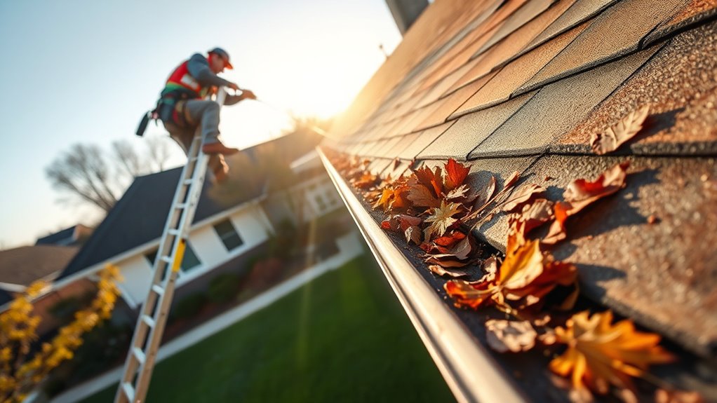 Gutter cleaning and maintenance are vital tasks that protect your home from water damage and costly repairs. One way to enhance your gutter system’s effectiveness is by incorporating rainwater harvesting. This sustainable practice allows you to collect and store rainwater for gardening or other outdoor uses, reducing your reliance on municipal water and easing the burden on your gutters. To maximize this system, make certain your gutters are free of debris, as clogs can prevent water from flowing into your rainwater collection systems. Regularly inspecting and cleaning your gutters becomes even more important if you’re aiming to optimize rainwater harvesting, as debris buildup can contaminate the stored water and diminish its quality.