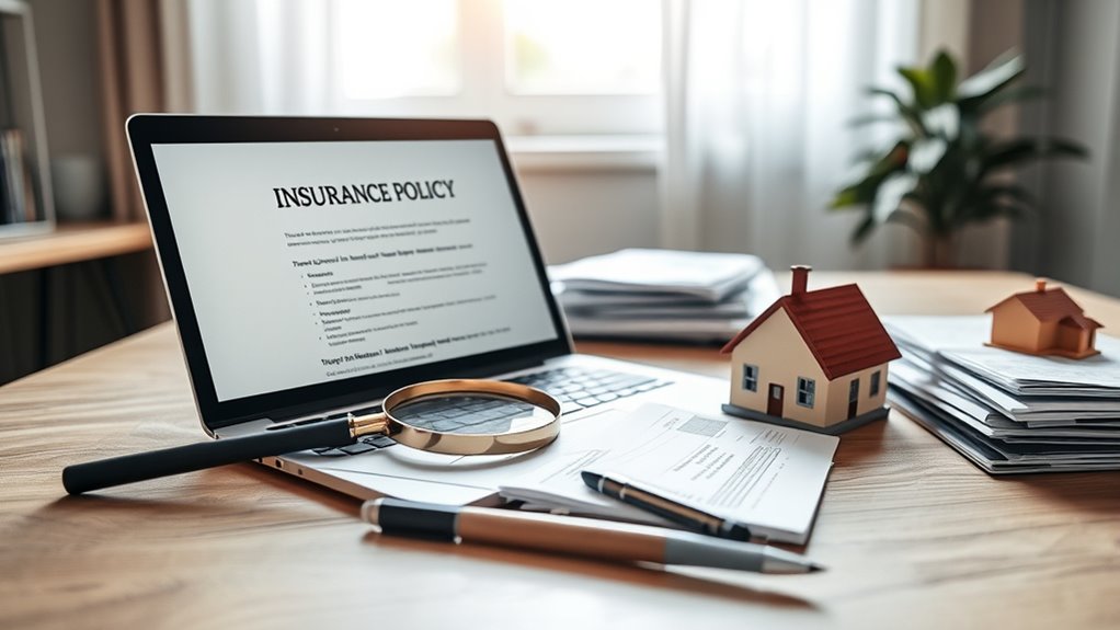 You often overlook coverage exclusions and underinsured risks during policy reviews. These gaps can leave your home vulnerable if certain damages or losses aren’t covered, like specific natural disasters or personal belongings beyond policy limits. Make sure to read the fine print carefully, ask about exclusions, and consider whether your coverage matches your current needs. Updating your policy regularly helps fill these gaps and protects you from unexpected, costly surprises.