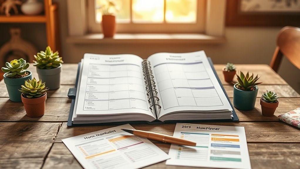 You should review and update your maintenance checklist at least twice a year, ideally in spring and fall. Regularly revisiting your schedule guarantees you’re addressing seasonal needs and catching issues early. Use scheduling tips like setting reminders or calendar alerts to stay on track. This way, you keep your home in top shape, prevent costly repairs, and stay organized throughout the year.