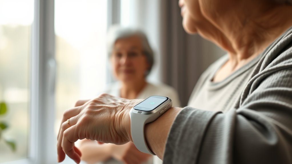 Once a fall is detected, these systems automatically trigger an emergency response. Many devices are equipped with built-in communication features, such as cellular connectivity or Bluetooth, allowing them to send alerts directly to caregivers, family members, or emergency services. This instant communication guarantees that help is on its way without delay. Some wearables even include two-way voice functions, enabling the person to speak with responders if they’re conscious, further expediting assistance. The seamless integration of sensor data and emergency response protocols minimizes the gap between a fall occurrence and the arrival of aid, which can be lifesaving in critical situations. Additionally, the importance of sensor reliability in ensuring consistent and accurate monitoring cannot be overstated, as it directly impacts the device’s ability to differentiate true falls from normal movements.