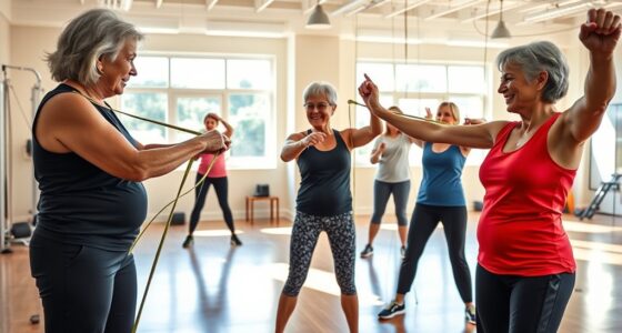 You’ll also find that the supportive community fosters social engagement, helping to combat feelings of isolation and improve your mental health. By participating in these workouts, you can reduce age-related health issues like heart disease and osteoporosis, promoting longevity and a better quality of life. Professional help can further assist seniors in creating tailored fitness plans that address their individual health needs.