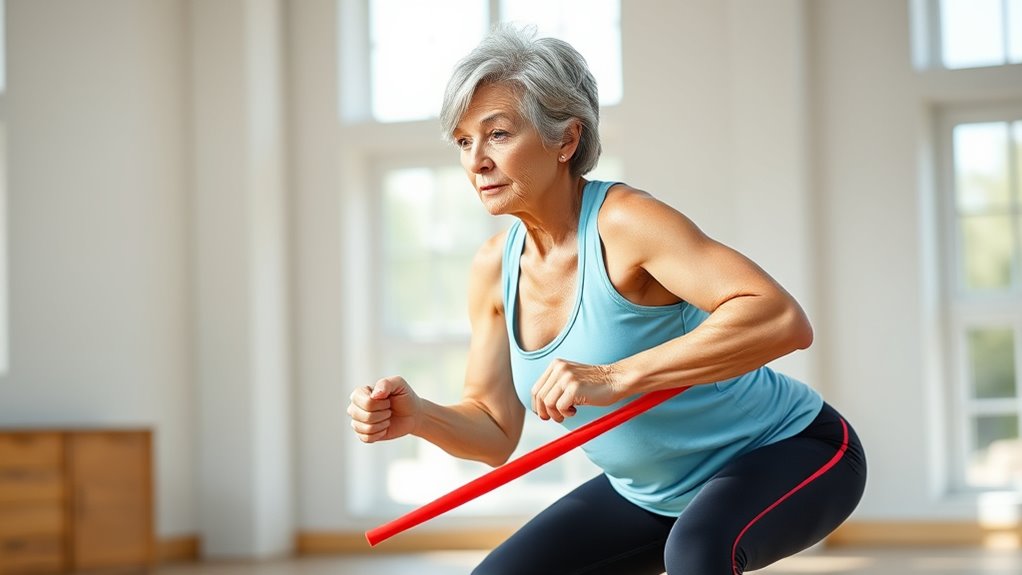 Using resistance bands also allows for seasonal variations, which can help keep your workouts fresh and adaptable throughout the year. One of the key benefits of resistance bands is the exercise variety they offer. You can perform a wide range of movements that target different muscle groups, making your workouts more engaging and well-rounded. From seated leg presses to standing shoulder raises, the options are extensive. Incorporating exercise variety not only keeps you interested but also promotes balanced muscle development, which is essential for maintaining mobility and preventing falls. You can easily switch between exercises, adjusting your stance or the band’s position to work on various parts of your body. This flexibility allows you to customize your workout based on your fitness level, comfort, and specific needs.