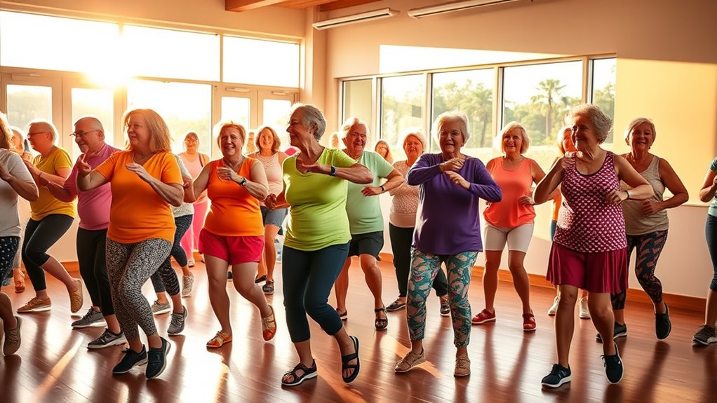 Zumba for seniors is a fun way to boost your health and stay active. Classes like Zumba Gold focus on low-impact dance routines that enhance cardiovascular fitness, improve balance, and increase coordination. You’ll burn calories while enjoying energizing music, which also lifts your mood. Plus, you’ll build connections with others who share your passion. Ready to dance your way to better health? Stick around to discover more benefits and helpful tips to get started!