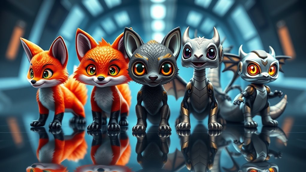 Have you ever wondered what makes a Bitzee Digital Pet truly collectible? It’s all about variety—there are animals like cats, bunnies, unicorns, and dragons, so you can pick one that matches your child’s interests. Look for toys that evolve through multiple stages, from babies to adults and even Super Bitzee; this adds depth and keeps the collection exciting. Features like outfits, mini-games, and customization options make each pet more unique and appealing. Check how many different characters are included—more options mean more fun and discovery. Also, see if the toy can connect with additional collectibles or accessories, allowing the collection to grow over time. These factors truly enhance the collectible appeal of a Bitzee Digital Pet.