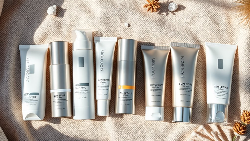 Selecting the right texture for your Korean sunscreen is essential in winter, when dry air and cold temperatures can make your skin feel uncomfortable or weighed down. A lightweight, non-greasy formula, like gels or water-based sunscreens, absorbs quickly and leaves no white cast, making them perfect for layering under your winter skincare. If your skin needs extra hydration, creams or lotions add that moisture boost while still offering protection. Your texture choice also affects how well the sunscreen blends with other products, preventing pilling or discomfort. Picking a texture suited to your skin type ensures you stay protected without feeling heavy or clogging pores. Ultimately, your preference helps maintain comfort and effectiveness during the chilly months.