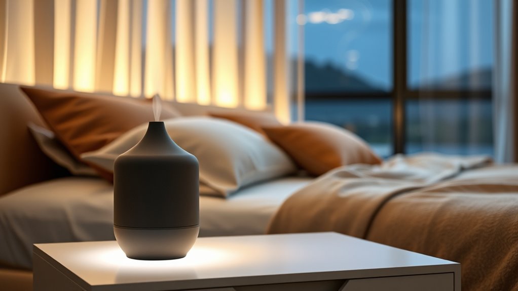 Adding aromatherapy features to a humidifier can transform my bedroom into a calming sanctuary, enhancing relaxation and sleep quality. With these features, I can add essential oils to create a soothing, fragrant environment that helps reduce stress and promote better rest. Some models include dedicated aroma pads or trays, making it easy to switch scents without mess or spills. It’s important to check if the humidifier is compatible with essential oils, as some require specific compartments. Besides creating a pleasant atmosphere, aromatherapy can provide therapeutic benefits like easing congestion or uplifting my mood. This feature not only improves sleep but also adds a personalized touch to my space, making it both functional and relaxing. It’s a thoughtful addition for anyone seeking a holistic approach to bedroom comfort.