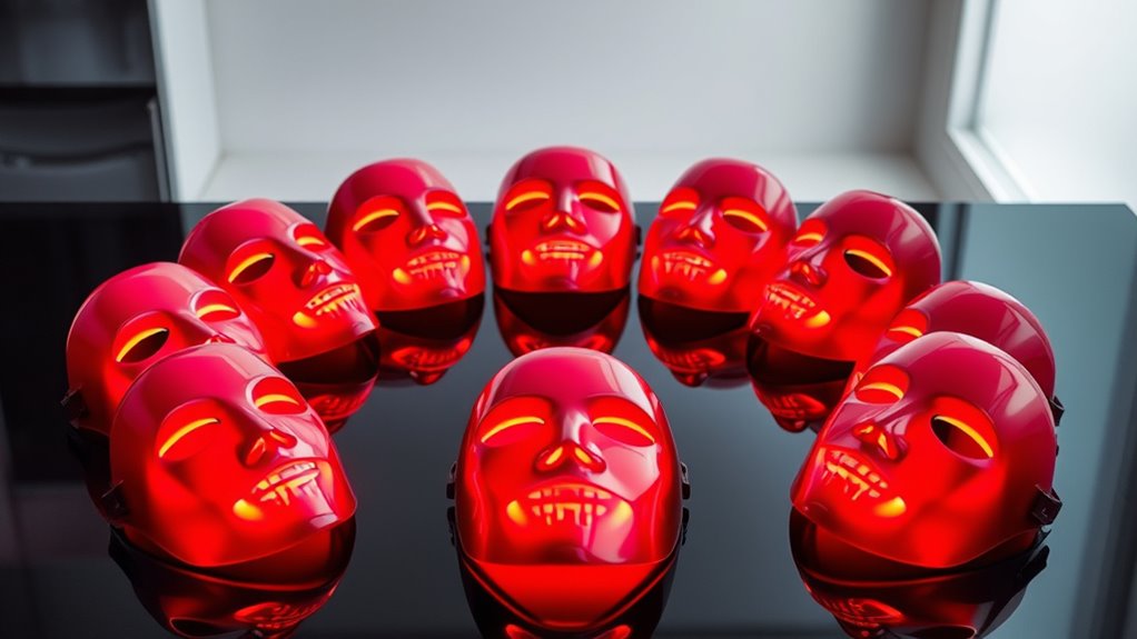 In 2025, the top red light therapy masks are revolutionizing skincare by offering full-face coverage, customizable modes, and cordless convenience. I recommend masks with high LED counts, adjustable fit, and effective wavelengths from 630 to 850nm for better rejuvenation. Many models now feature rechargeable batteries and multiple therapy options, making treatments more personalized and hassle-free. If you stay tuned, you’ll discover which options are best suited to your skin needs and how they can transform your routine.
